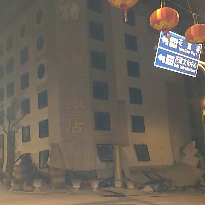 2018-02-10 07:53:30花蓮昨天發生規模6.0的強烈淺層地震,震度高達7級,有4處飯店、社區大樓或民宅傾斜坍塌,多條道路隆起、龜裂,最新數據顯示,已經造成9死270傷,救出231人,目前失聯10人,8處瓦斯外洩及3.1萬戶停水。搜救人員持續尋找受困者,地震第一時間畫面,也陸續傳出。公園路上的統帥飯店,整棟大樓傾倒,一樓水泥墩整個被折斷,三樓變一樓,30名日本旅客脫困,但仍有員工受困。商校街雲門翠堤社區大樓也傾倒。翰品、美崙飯店傾斜。另外,國盛一街、國盛六街的社區大樓也傾倒,有網友的行車紀錄器錄到民宅瞬間震塌