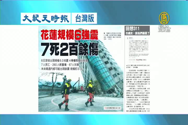 【新唐人亞太台 2018 年 02 月 08 日訊】繼續看到大紀元時報台灣版報導:花蓮規模6強震,7人死亡200餘人受傷。