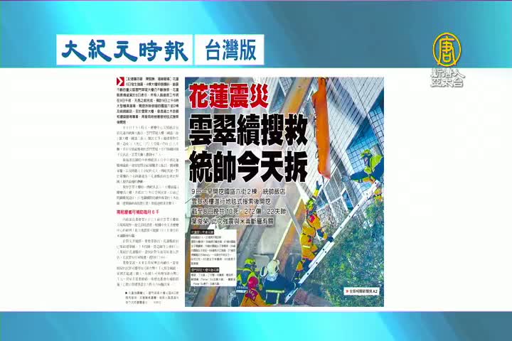 【新唐人亞太台 2018 年 02 月 09 日訊】繼續看到大紀元時報台灣版報導:花蓮震災,雲門翠堤大樓繼續搜救,統帥飯店今天拆。
