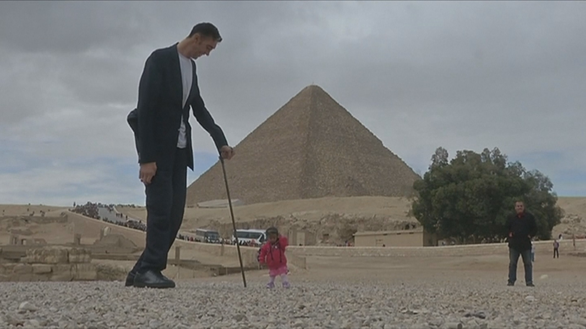 世界最高男和最嬌小女 一同遊訪金字塔