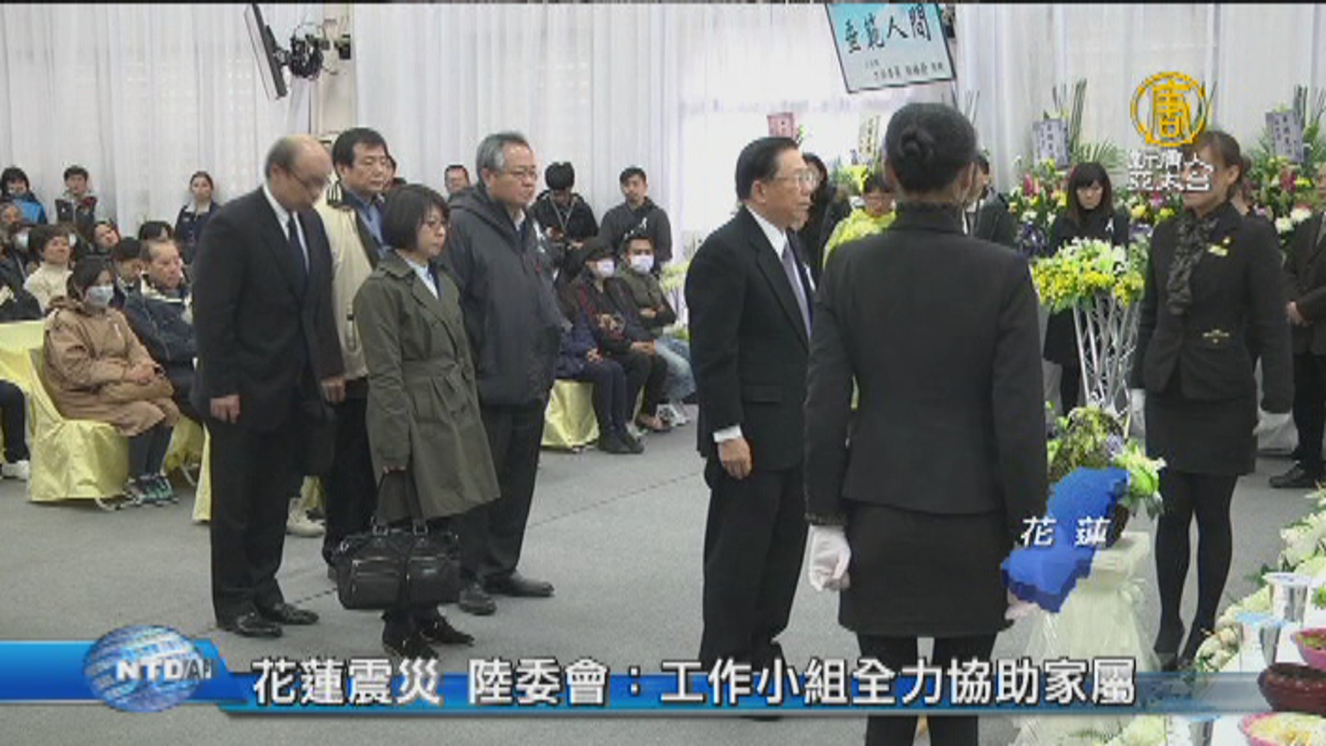 【新唐人亞太台 2018 年 02 月 12 日訊】再來看到,花蓮強震造成17人死亡,今天花蓮縣政府舉辦聯合追思公祭,包括總統府秘書長吳釗燮、海基會董事長田弘茂、陸委會主委張小月等人,都親自到場致意。陸委會主委張小月表示,罹難者中包括9位陸籍遊客,陸委會特別成立了工作小組,來協助家屬處理善後。