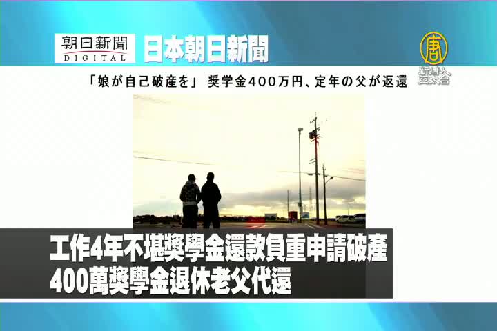 【新唐人亞太台 2018 年 02 月 14 日訊】來看到日本朝日新聞報導:年輕人就學貸款,畢業後工作四年薪資太微薄還不起,申請破產,剩餘的400萬,由退休父親代替償還。