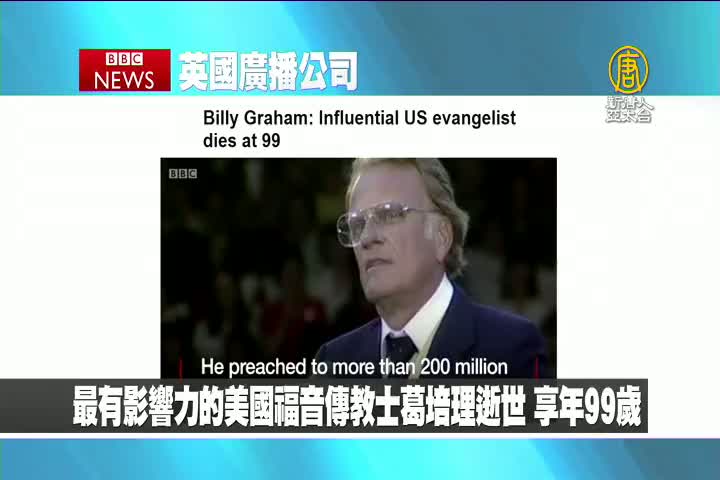 【新唐人亞太台 2018 年 02 月 22 日訊】繼續是英國廣播公司BBC的報導:最有影響力的美國基督教傳教士葛培理逝世,享年99歲。