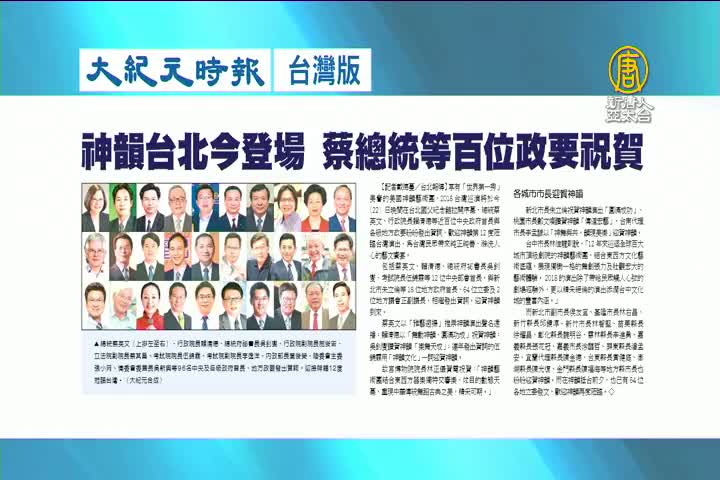 【新唐人亞太台 2018 年 02 月 22 日訊】繼續看到大紀元時報台灣版報導:神韻台北今日登場,獲蔡總統等百位政要祝賀。