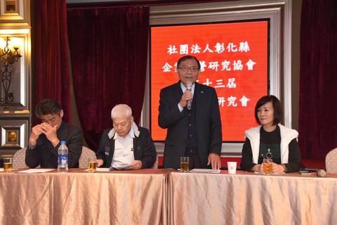 會長林通洲在彰化企協33屆籌備會上談主題 創新共行 勞資雙贏。(彰化企協提供)