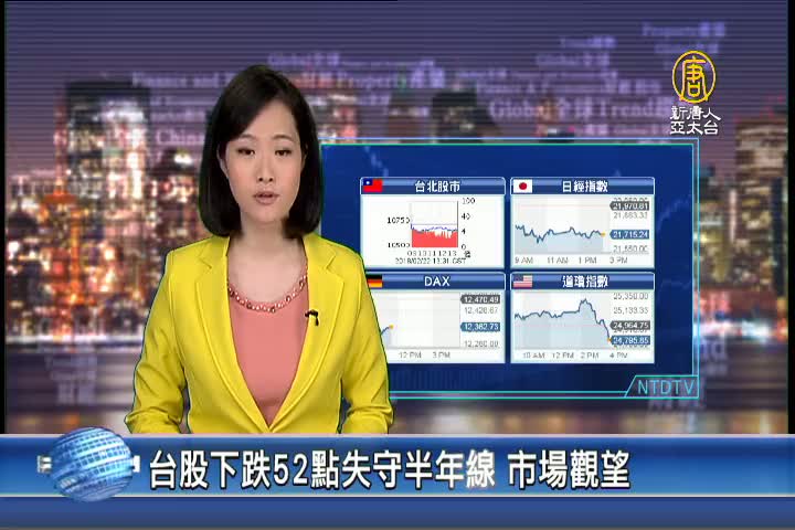 【新唐人亞太台 2018 年 02 月 22 日訊】好,政院拼經濟,來關心,台股金狗年,昨天開紅盤,大漲近300點,不過,在短線強彈後,今天加權指數開低震盪,終場下跌52.06點,收10662.38點,失守半年線,成交值達1203億元。