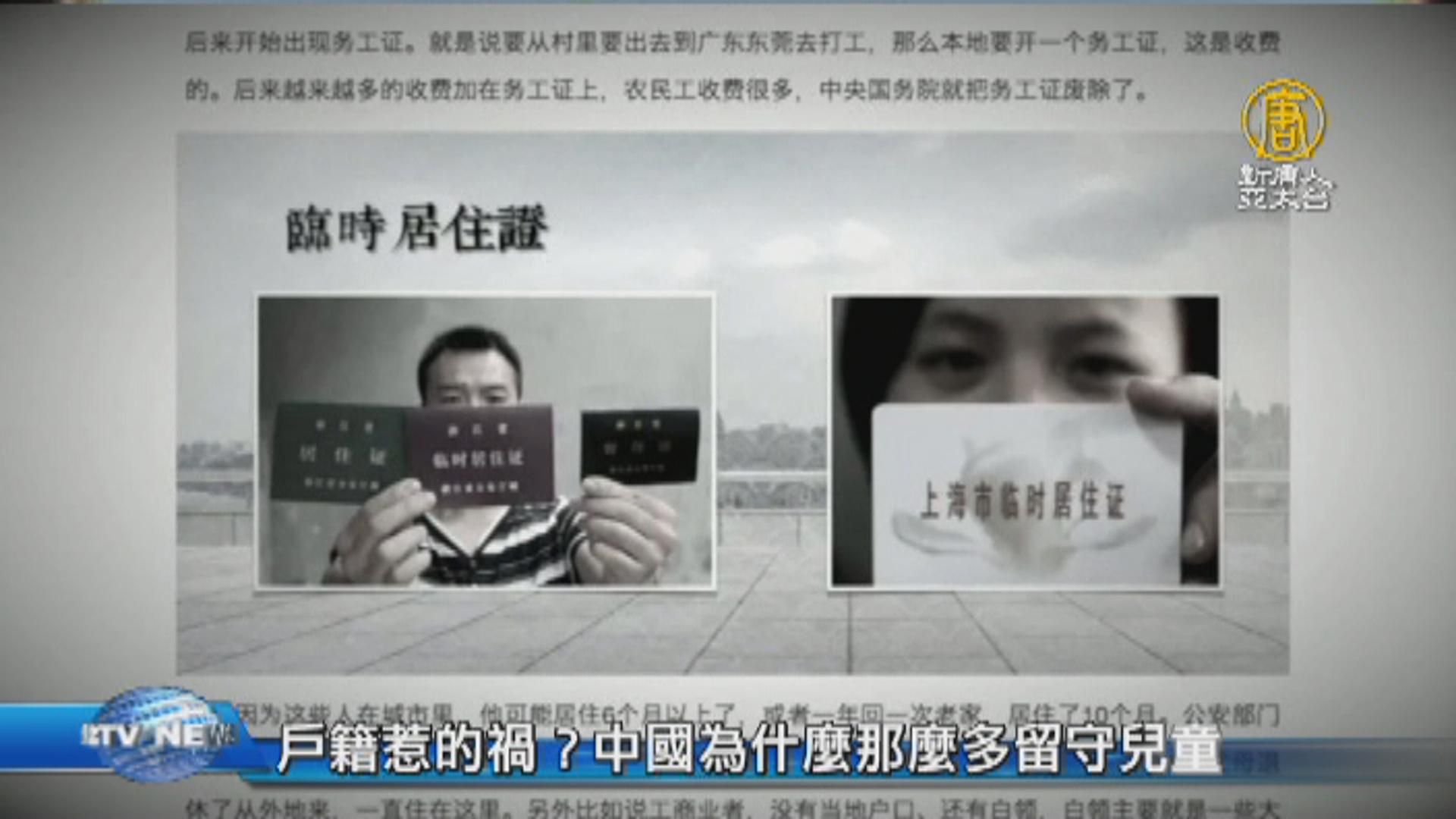 【新唐人亞太台 2018 年 02 月 22 日訊】中國留守兒童問題嚴重,根據數據,中國有六千萬的留守兒,造成這一現象的原因有很多,除了社會結構問題之外,其中一個,恐怕是,中共執政的基本框架之一,戶籍制度。今天的透視焦點,帶您瞭解。