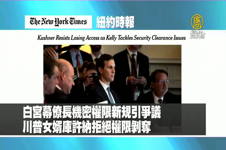 【新唐人亞太台 2018 年 02 月 23 日訊】首先來看到美國紐約時報報導:白宮幕僚長機密權限新規引發爭議,美國總統川普女婿庫許納拒絕權限剝奪。