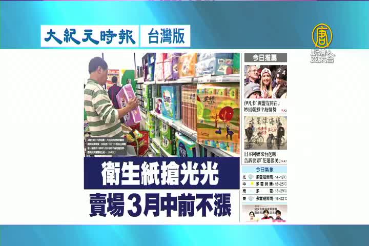【新唐人亞太台 2018 年 02 月 26 日訊】繼續看到大紀元時報台灣版報導:國際紙漿價格波動,引發衛生紙搶購熱潮,消保處強調,3月中以前各大賣場不漲價。