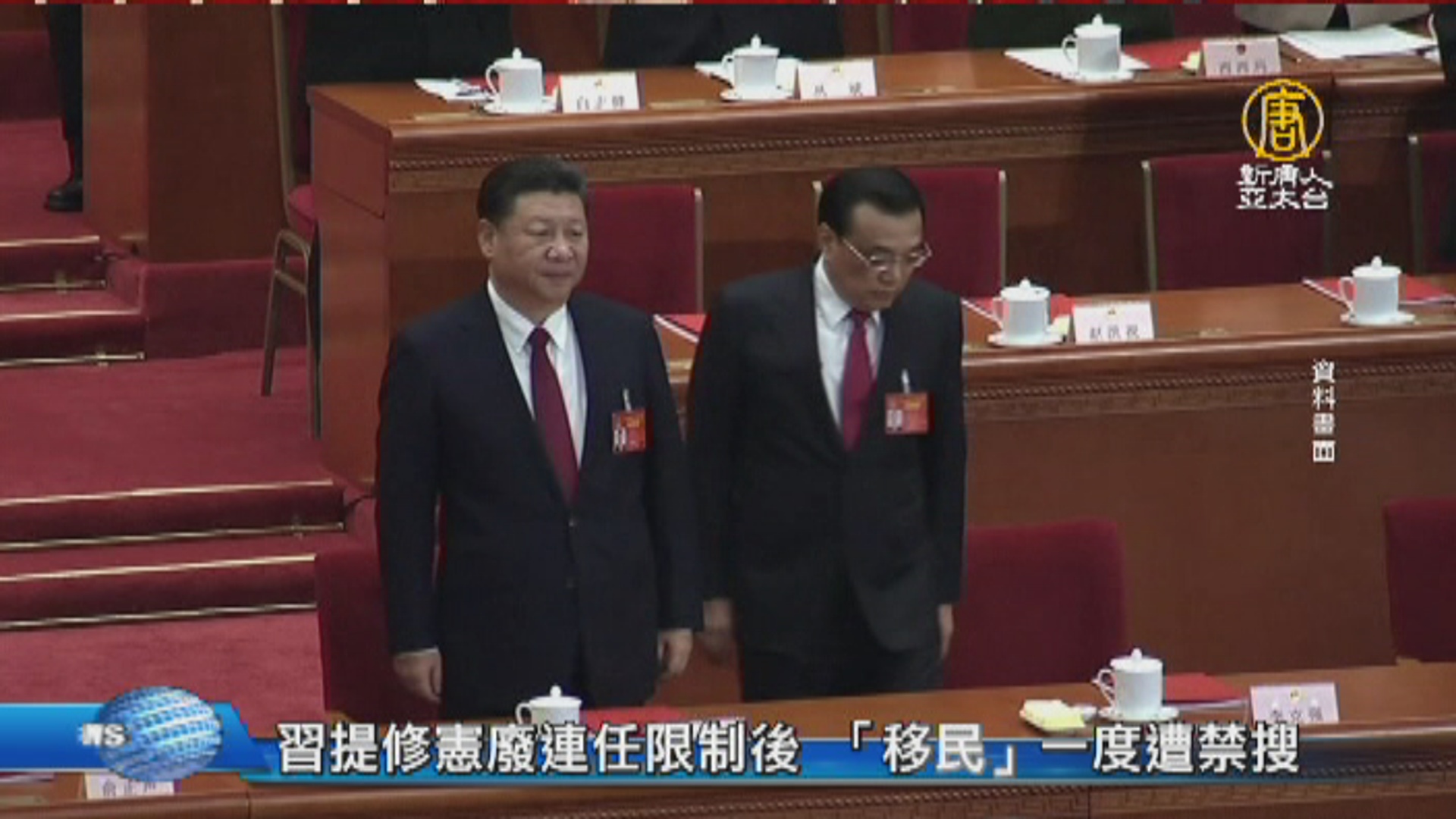 【新唐人亞太台 2018 年 02 月 26 日訊】來關心中國新聞焦點,中共昨天(25日),為習近平無限期掌權鋪平道路,提案廢除憲法中「國家主席連任不得超過2屆」的限制。有中國網友發現,這個消息公布後,中國國內網站搜尋「移民」的頻率竟然暴增10倍,還引發百度昨天一度封殺,禁搜移民相關資訊,今天已恢復正常。中國官方控制輿論,禁止網友討論,新浪微博目前是無法搜索「習近平」三個字。