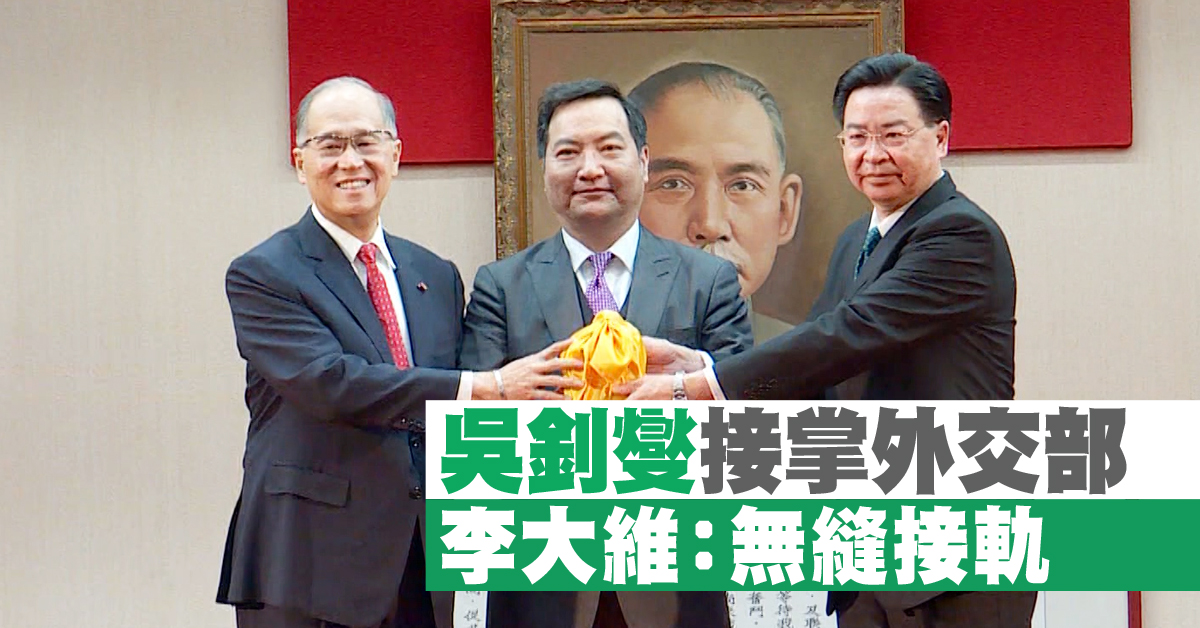 【新唐人亞太台 2018 年 02 月 26 日訊】再來看到,外交部今天(26)進行新舊任部長交接,由原任部長李大維交接給新任部長吳釗燮。李大維致詞時說,卸任心情很複雜,感謝同仁付出,讓台灣外交處境安然度過難關。並讚揚吳釗燮在外交與政治上的實力,有信心兩人能 無縫接軌。