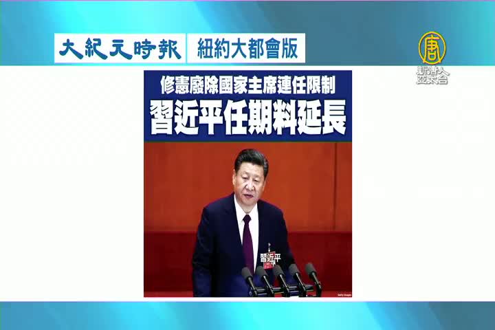 【新唐人亞太台 2018 年 02 月 27 日訊】接著看到大紀元時報紐約大都會版報導:中共修憲廢除國家主席連任限制,習近平將可能延長任期。