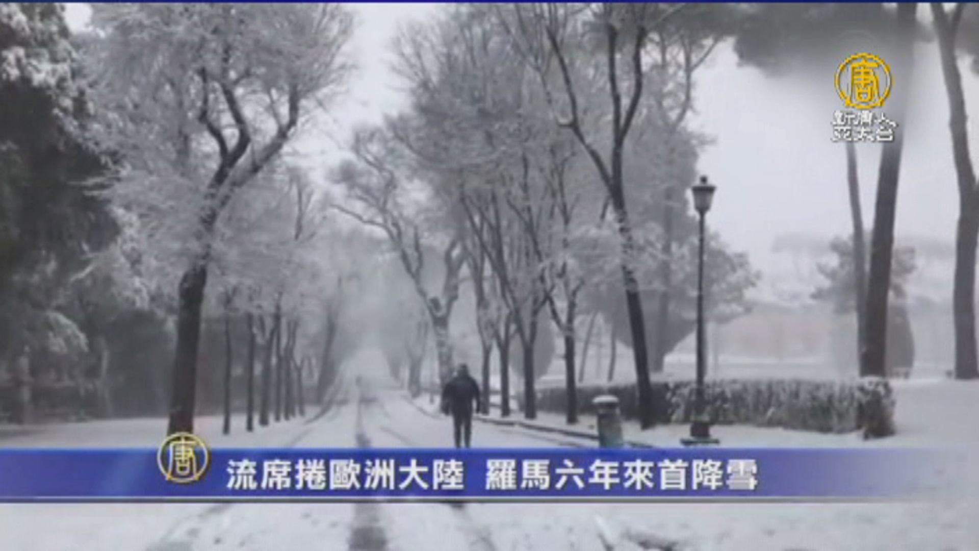 【新唐人亞太台 2018 年 02 月 27 日訊】歡迎回來。有六年沒有下雪的義大利首都羅馬,現在是下起了大雪,原因是,來自俄羅斯西伯利亞的寒潮,席捲整個歐洲,讓羅馬急凍,溫度下跌到零下七度,而低溫,也造成歐洲各地學校停課、交通中斷,還導致至少4人死亡。