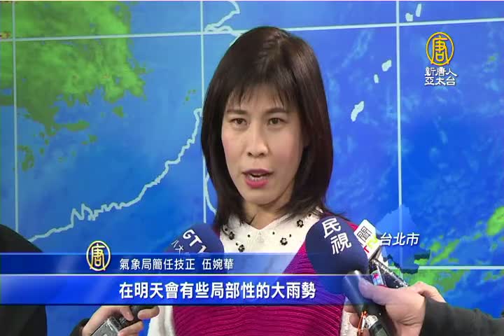 氣象局簡任技正 伍婉華:「今天東北季風減弱,各地氣溫都回暖了,而且天氣是穩定的,但明天有一道鋒面影響我們,這道鋒面我們預估會有對流雲系影響,所以大部分地區都可能會有下短暫陣雨的機會,尤其在中部、北部和東北部地區,在明天會有些局部性的大雨勢。」