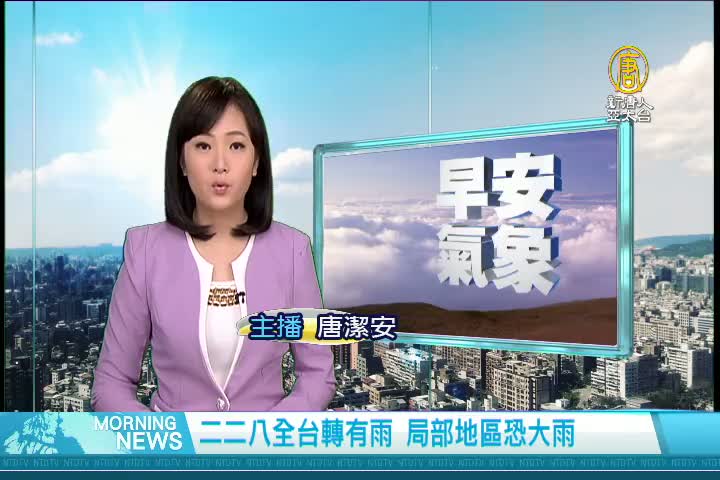 【新唐人亞太台 2018 年 02 月 28 日訊】歡迎您收看2月28日的早安新唐人,我是唐潔安,先來帶您關心今天的天氣情況。鋒面通過,今天各地水氣增多,全台將轉為有雨的天氣型態,局部地區甚至還有大雨,預計今天晚上,這波鋒面遠離,各地雨勢逐漸緩和。3月1日起鋒面減弱,預估3月2日元宵節將是晴朗穩定的好天氣。