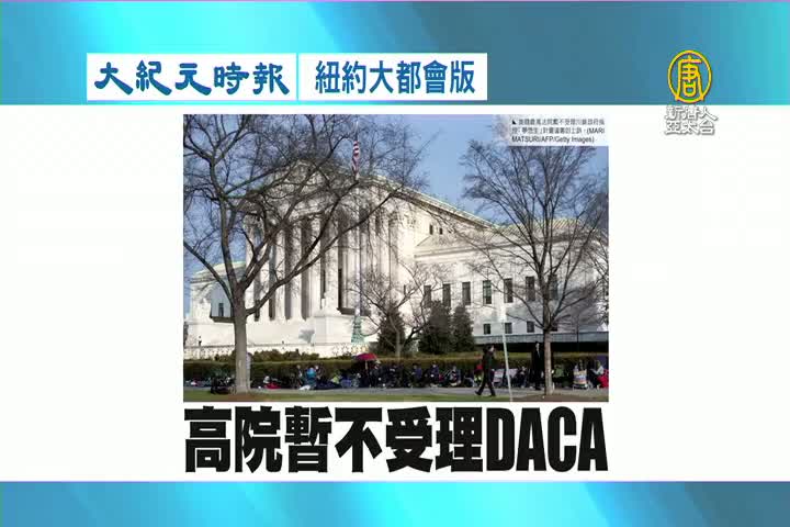 【新唐人亞太台 2018 年 02 月 28 日訊】接著看到大紀元時報紐約大都會版報導:美國最高法院周一決定,暫不受理川普政府對DACA夢想生計畫的上訴。