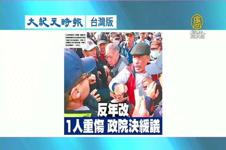 【新唐人亞太台 2018 年 02 月 28 日訊】繼續看到大紀元時報台灣版報導:反年改團體一人重傷,行政院決定緩議年改法案。