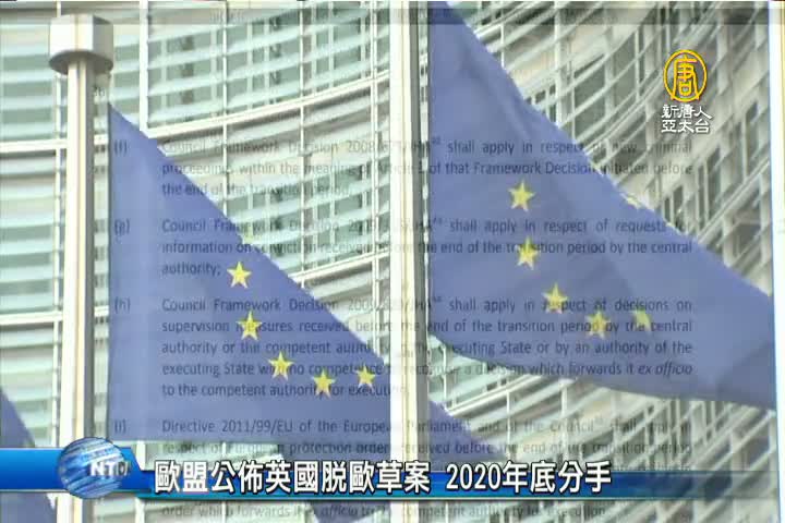 【新唐人亞太台 2018 年 03 月 01 日訊】早安新唐人,先來看到國際最新消息,歐盟周三公佈脫歐協議草案,明確要求北愛爾蘭在英國脫歐後留在歐盟關稅同盟,同時英國必須在2020年12月31日徹底脫歐。草案還規定,一旦英國和歐盟就脫歐協議出現爭議,包括「分手費」、在英國的歐盟公民權利等問題,歐盟最高法院歐洲法院將享有司法管轄權。3月2日英國首相梅伊將發表重要演講,3月5日全面回應歐盟脫歐協議草案。