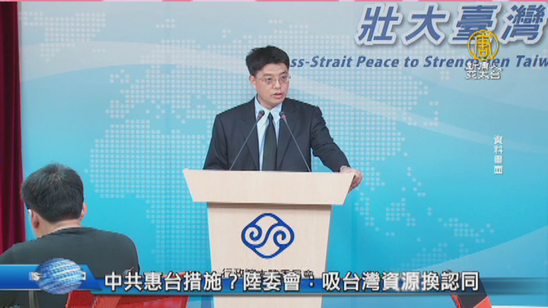 【新唐人亞太台 2018 年 03 月 01 日訊】中共昨天祭出所謂31項惠台措施,企圖藉此吸引台灣企業、社團、藝文業等領域人士前往中國。對此,陸委會昨天表示,陸方長期以來反覆推出多種類似措施,都是要提升其單方獲益的經濟發展目標、吸納台灣的資源,以利益換取我方的政治認同。陸委會說,中國大陸對台政策主張沒有改變,近期不斷對台灣緊縮施壓。