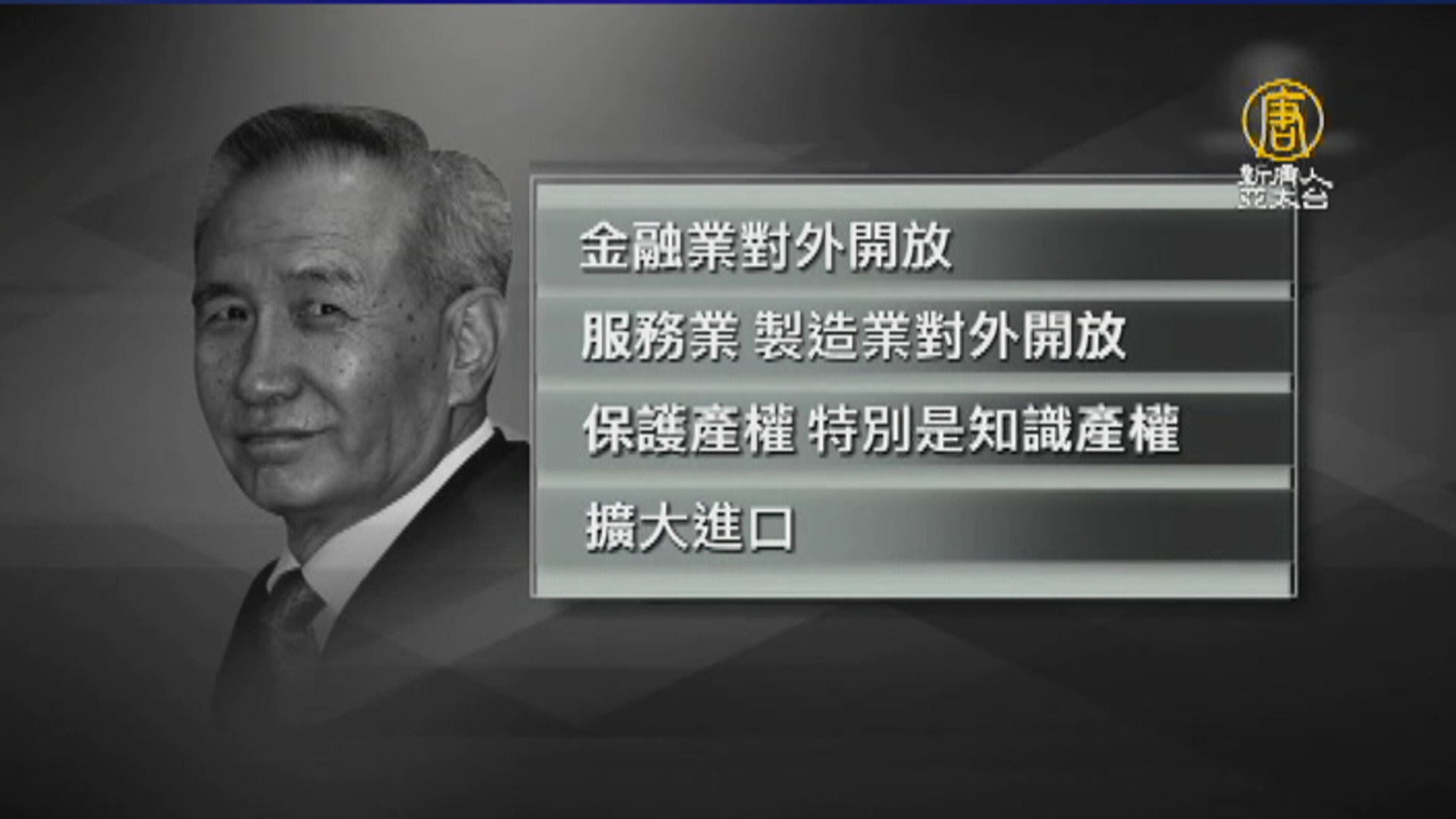 今年1月達佛斯論壇期間,劉鶴曾承諾中國今年進行深度改革,四大面向包括金融業對外開放;服務業製造業對外開放;保護產權特別是知識產權;和擴大進口。