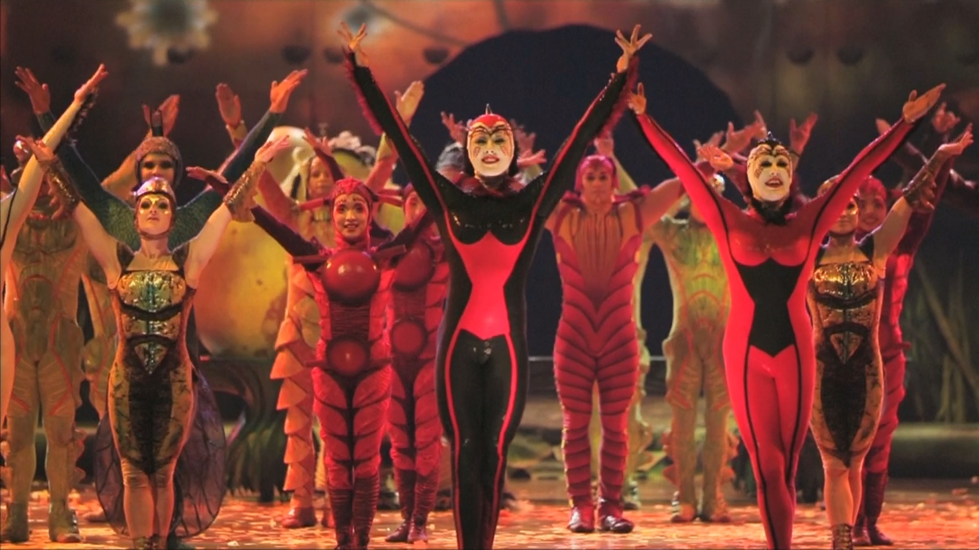 這些讓人目不暇給的特技動作,都是太陽馬戲團「Ovo(蟲林森巴)」劇的精彩片段,「Ovo」是葡萄牙語中「蛋」的意思,所以整個故事的開始,就是藍色蒼蠅帶來一顆神祕的蛋,打破昆蟲世界原本的祥和秩序。前場火熱演出,幕後也片刻不得閒!