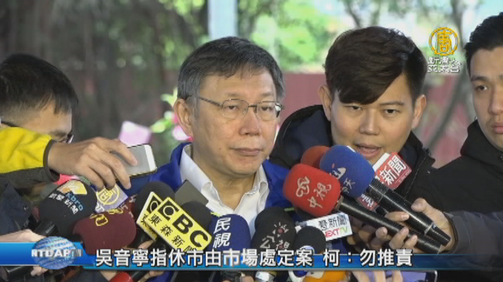【新唐人亞太台 2018 年 03 月 08 日訊】北農休市三天後菜價崩跌,周三(7日)晚間,農委會副主委陳吉仲與北農總經理吳音寧出面,吳音寧指出,去年北市市場處召開會議,北農認為連休三天不妥,不過與會成員強烈表達休市立場,最後由市場處定案休市三天。北農與市府是否互踢皮球,來看到,稍早柯文哲的回應。