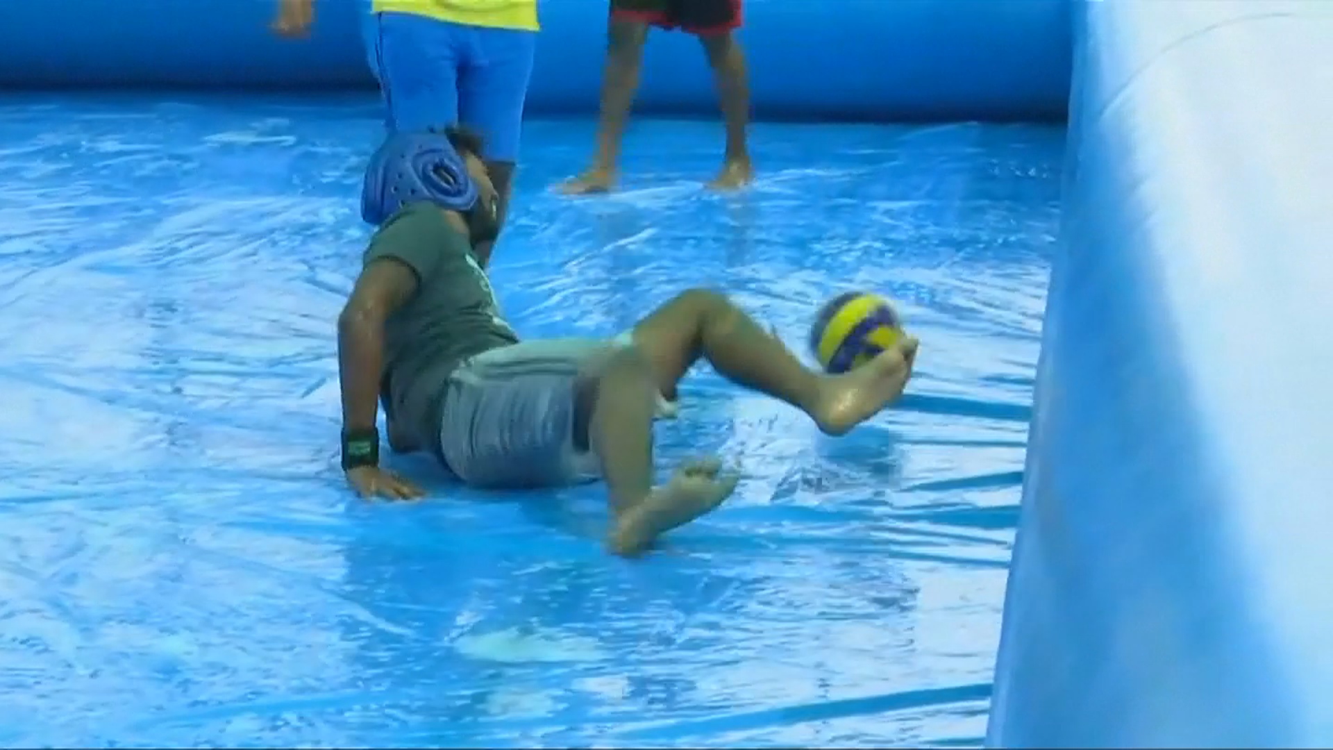 滑倒也要踢!印度足球新玩法 肥皂足球