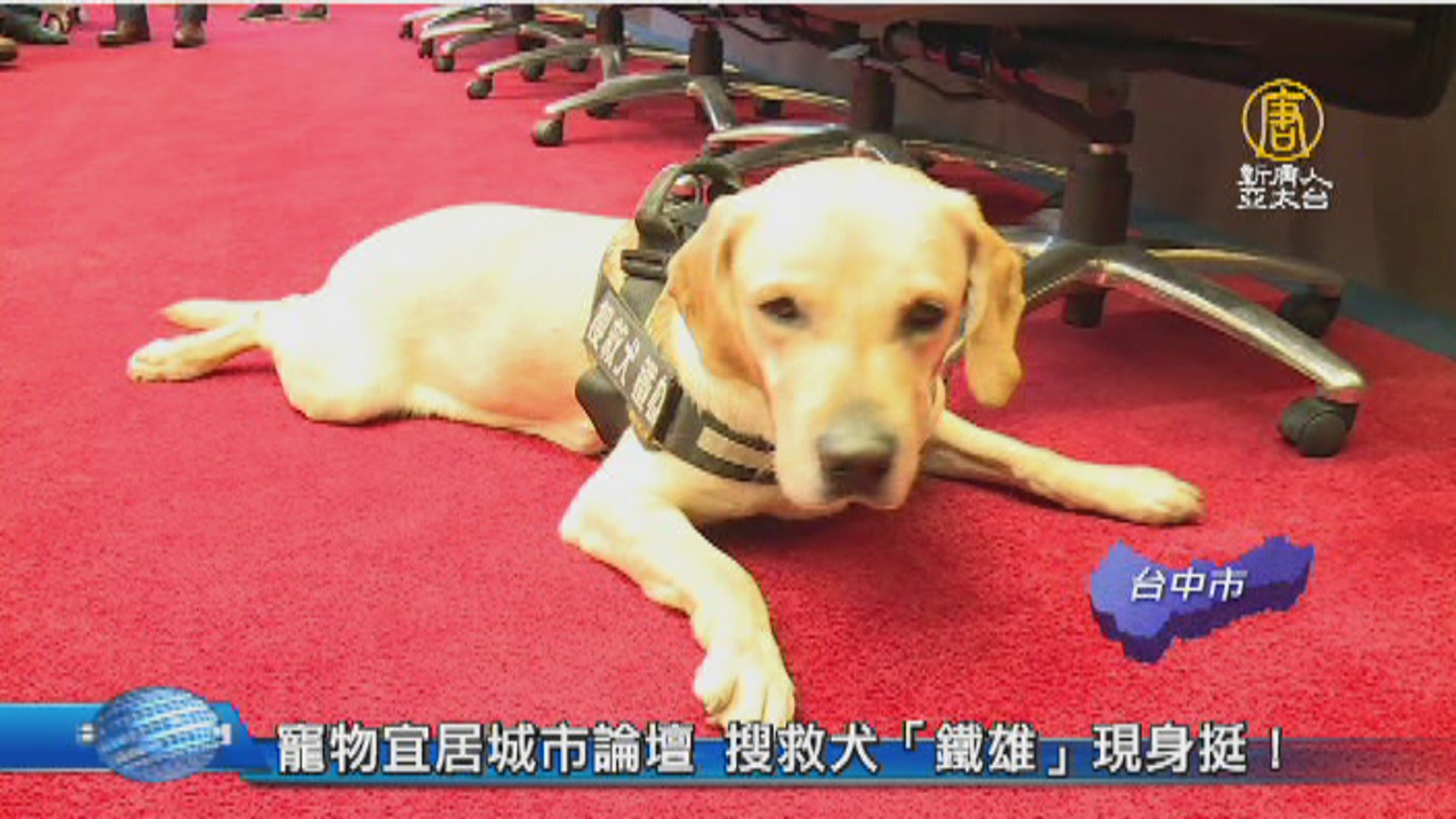 【新唐人亞太台 2018 年 03 月 08 日訊】還記得投入花蓮震災的台中搜救犬「鐵雄」嗎?今天(8日)與近十隻寵物犬出席寵物宜居城市論壇,爭取毛小孩的權益,像是寵物友善空間,以及醫療保障。