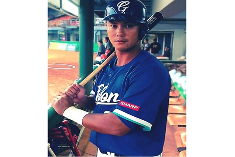 富邦悍將高國輝身著繡有SHARP的客場球衣。(台灣夏普提供)
