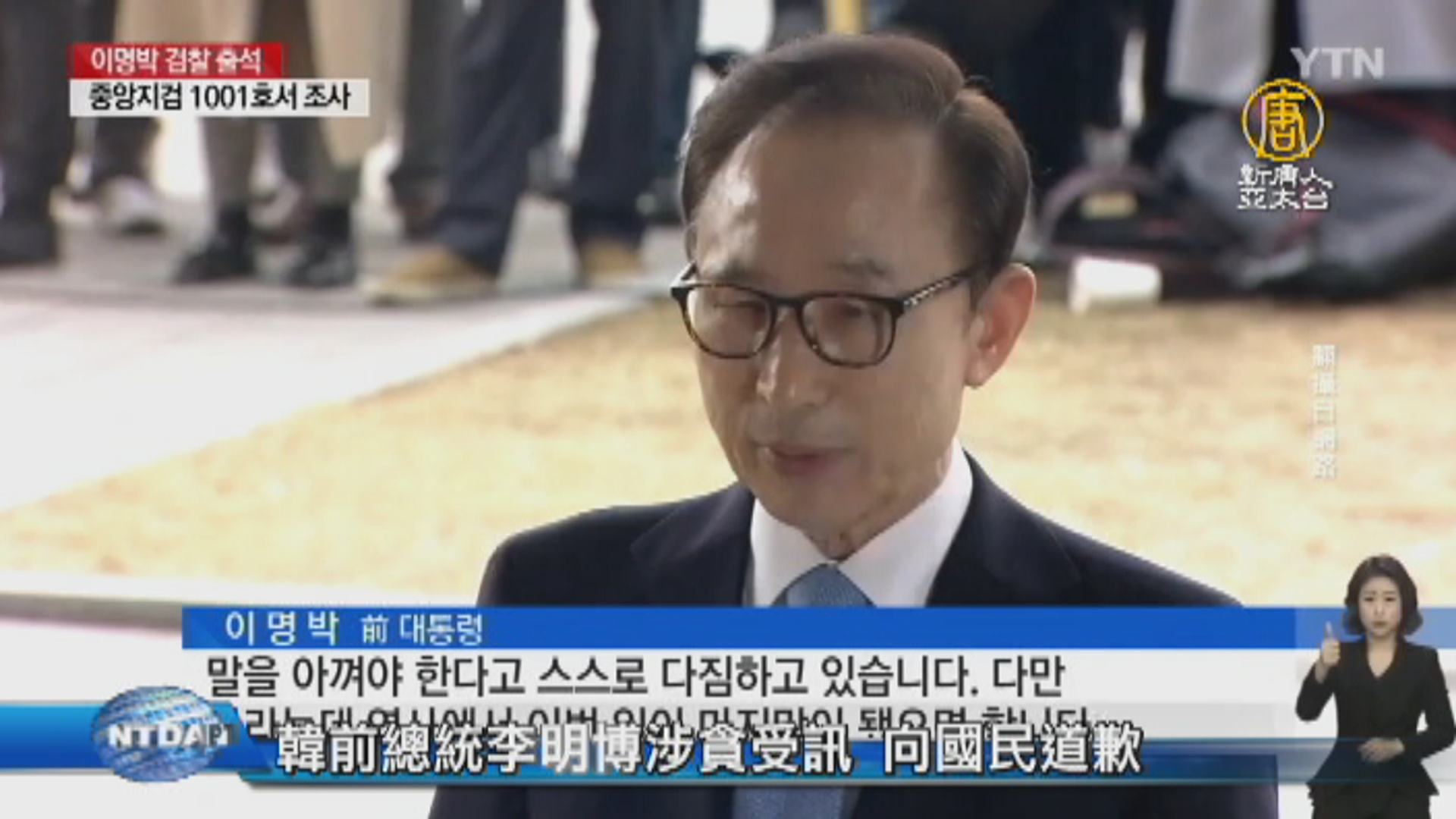 【新唐人亞太台 2018 年 03 月 14 日訊】南韓前總統李明博被控受賄,今天上午,他在首爾中央地方檢察廳接受調查前,發表談話向國民道歉。他說,希望發生在自己身上的事情能成為韓國歷史上最後一次。李明博是第5個以韓國前總統身分接受檢方調查的人,上一個被傳訊的前總統是朴槿惠。