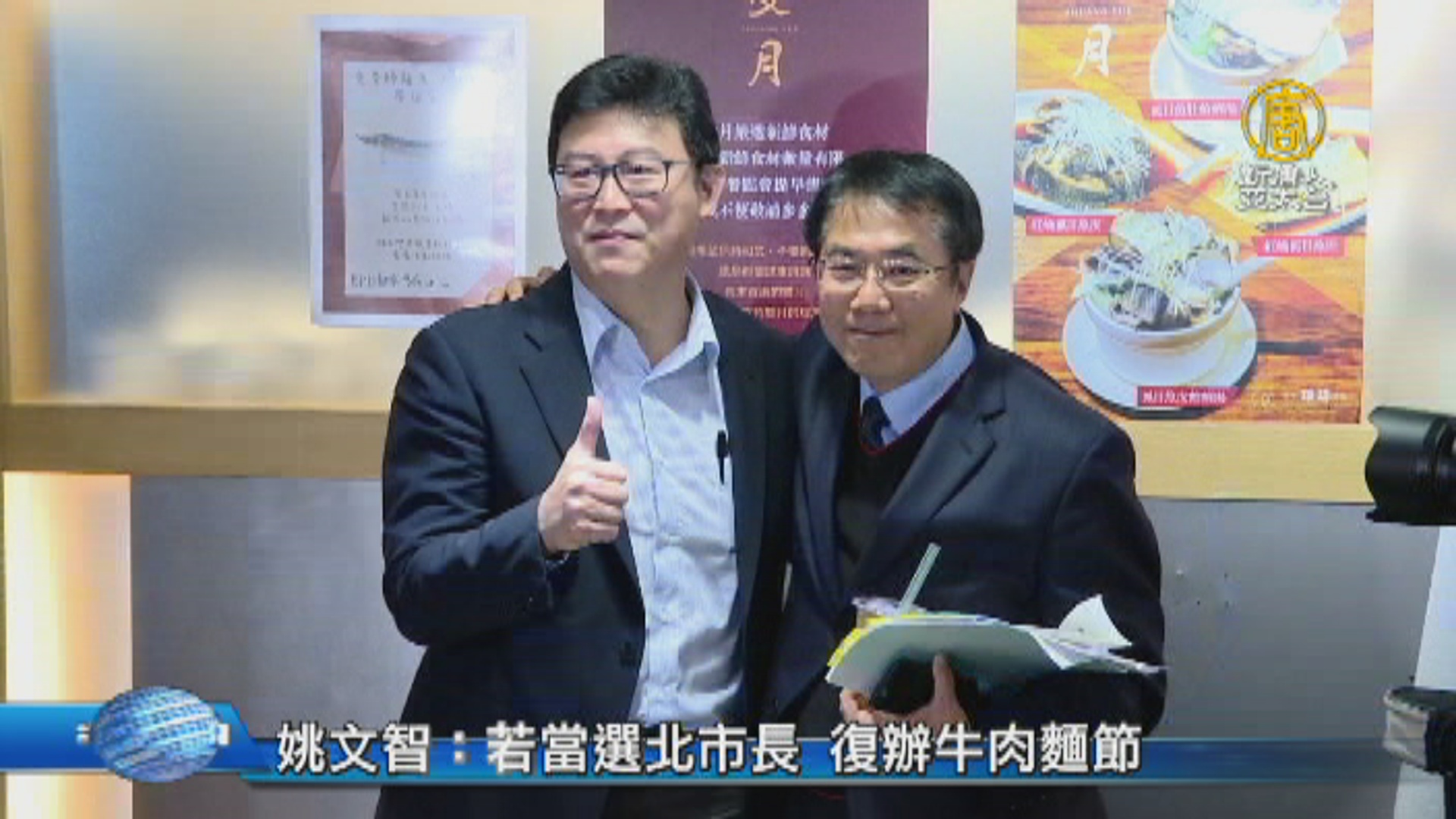 【新唐人亞太台 2018 年 03 月 15 日訊】米其林美食評選話題襲捲台北,民進黨立委姚文智與黃偉哲,今天(15日)也在獲米其林評選的小吃店舉辦記者會,就首都與府城美食推廣交流。姚文智表示,如果當選台北市長,將復辦被柯文哲取消的牛肉麵節。