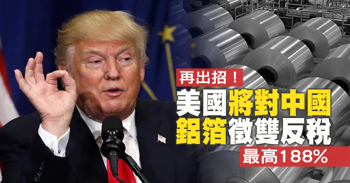 再出招!美將對中鋁箔徵雙反稅 最高188%