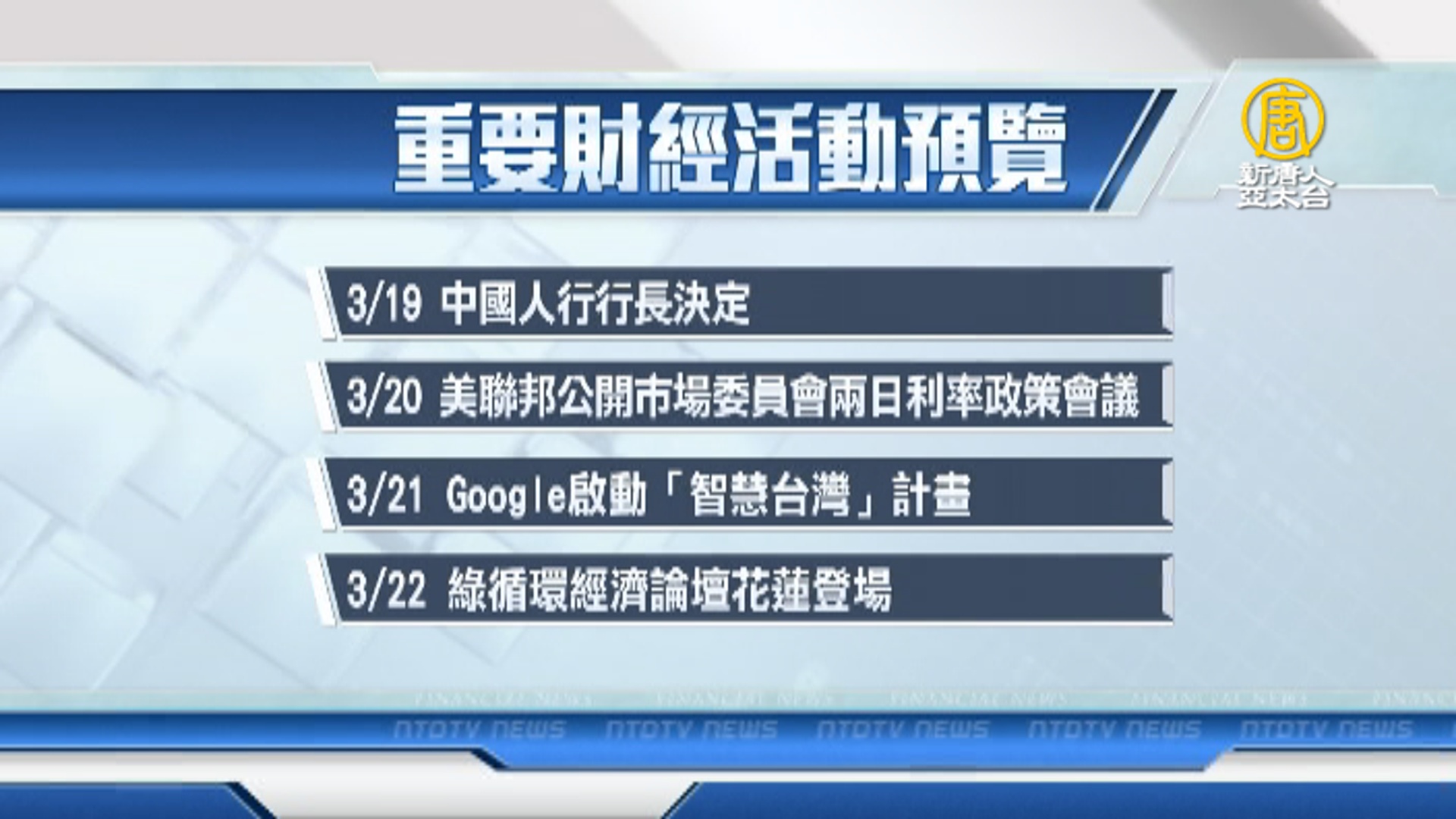 財經活動預告|三月十八日