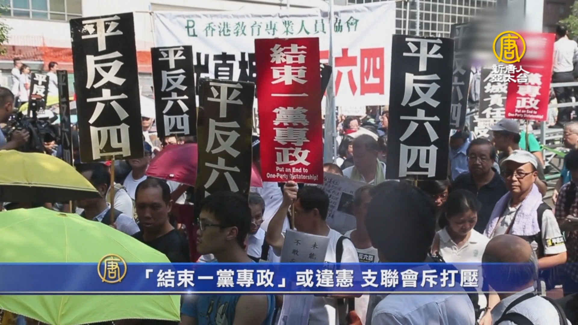 「結束一黨專政」是支聯會每年六四晚會都會高喊的一句口號。支聯會發聲明譴責譚耀宗的言論,對港人言論自由、表達自由、選舉和被選權利等的嚴重挑釁。支聯會常委、立法會議員梁耀忠星期二出席港台節目重申支聯會會堅持到底。
