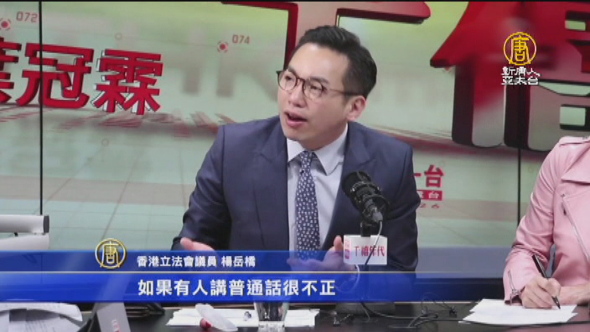 香港立法會議員 楊岳橋:「如我用廣東話唱,但字正腔圓,這算不算歪曲、貶損甚至其他方式?如果有人講廣東話很不正,旁人聽到覺得很刺耳的,這又算嗎?」