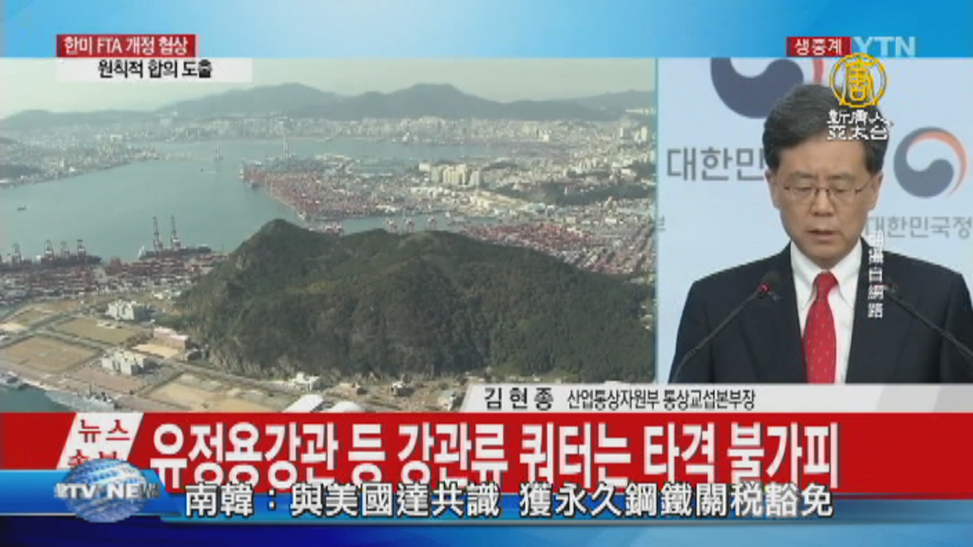 南韓貿易部長 金鉉宗:「已經完成韓美FTA 和232鋼鐵協議後回國;我們達成了一項協議,出口量的74%,而不需要額外的關稅25%。」