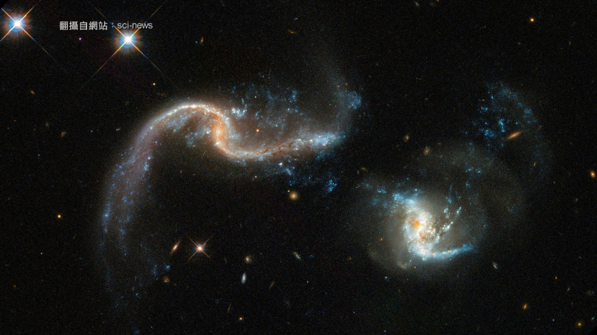 NASA捕捉到兩星系合併 撞出耀眼藍色光芒