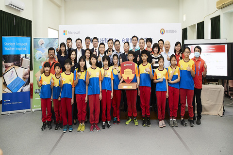 微軟及南屏國小秉持對未來人才培育的共同理念,於南屏國小67週年校慶及兒童節前夕攜手合作翻轉教育五大計畫,共同宣佈南屏國小成為宜蘭第一所微軟學校,將軟實力送給所有學童。。(微軟提供)
