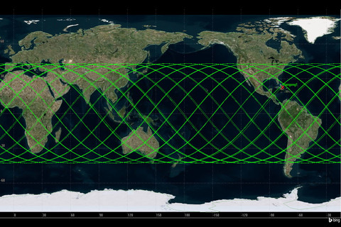 【新唐人亞太台 2018 年 03 月 28 日訊】中國太空站天宮一號總重8.5噸,軌道設計是傾角(與赤道的夾角)約43度(如下圖綠線),3月28日軌道高度已降低至200公里,應有可能於一週內墜地。傾角43度表示南北緯43度以內的任何地區都有可能是落點。