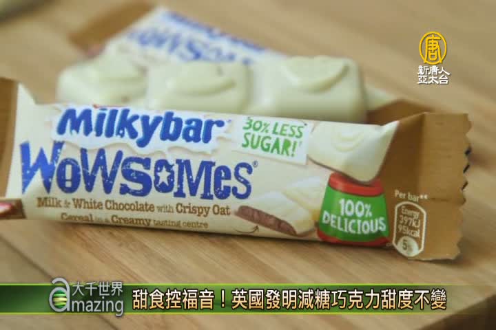 【新唐人亞太台 2018 年 04 月 02 日訊】英國為了解決兒童肥胖的問題,決定於下個月開始針對含糖飲料課徵「糖稅」,每100毫升飲料中如果含有5克糖,就必須繳稅,因此許多業者趕在新稅上路之前,想方設法減低飲料內的糖分,有食品公司研發出1款新的白巧克力棒,使用結構重組的糖,能夠使巧克力棒甜度不變,但含糖量少3成。