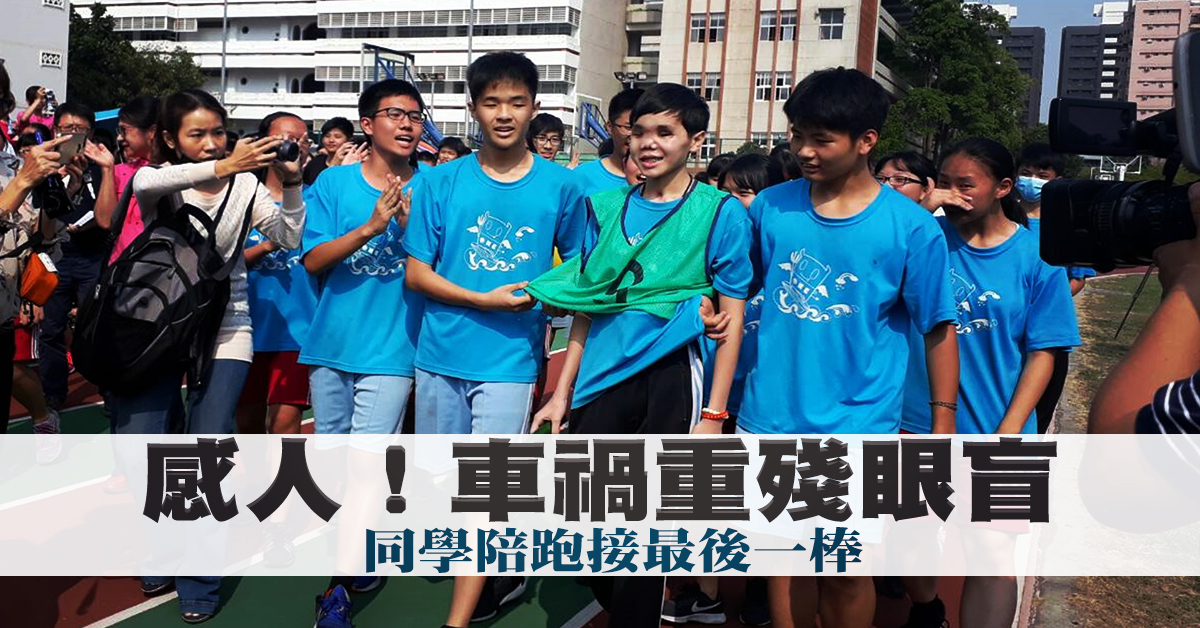感人!車禍重殘眼盲 同學陪跑接最後一棒