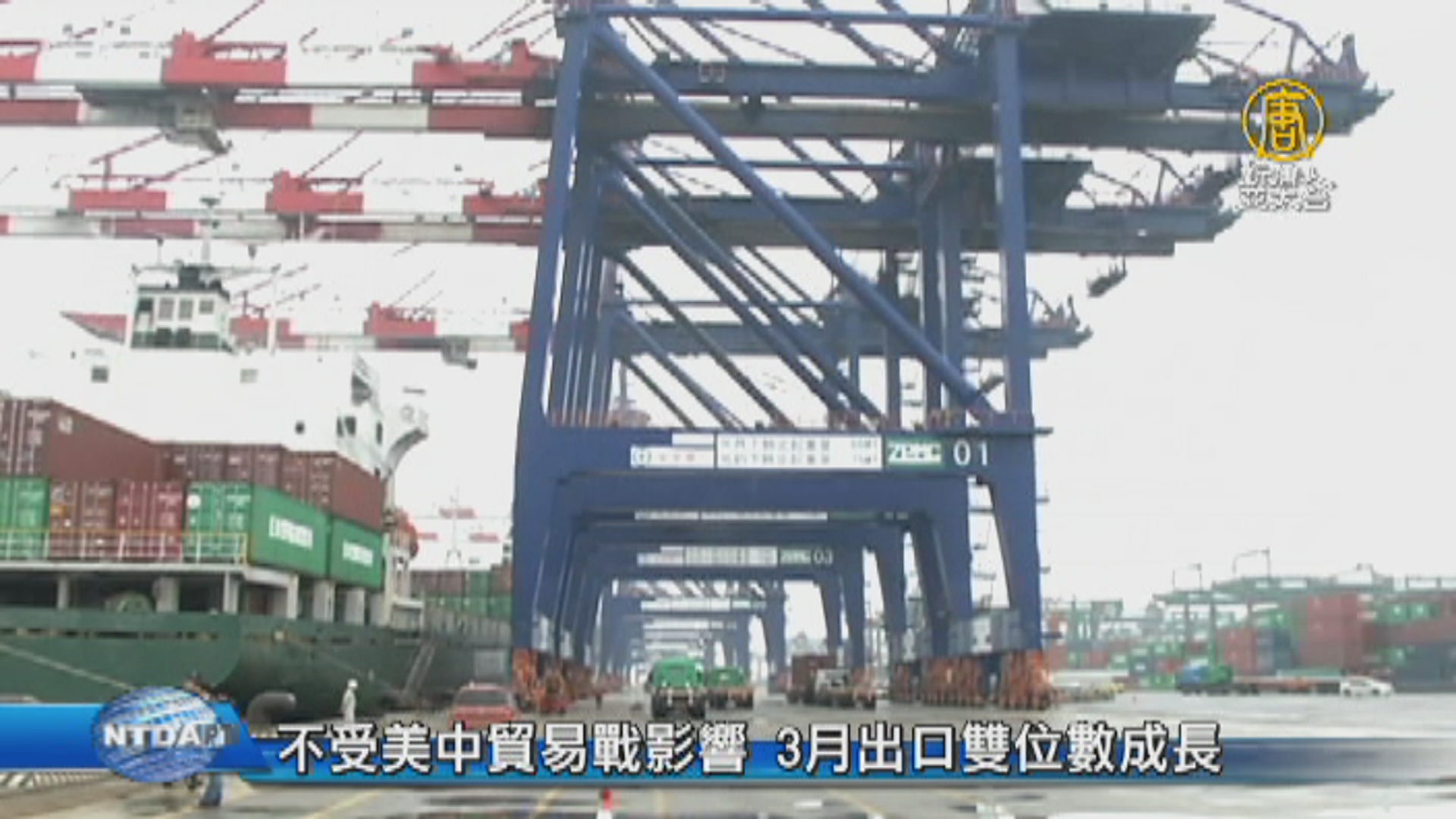 【新唐人亞太台 2018 年 04 月 09 日訊】好,台灣出口表現,不受美中貿易戰影響!財政部部長許虞哲上午在立法院透露,台灣3月份出口數據,為雙位數正成長,美中貿易戰,目前未對台灣出口造成重大影響。