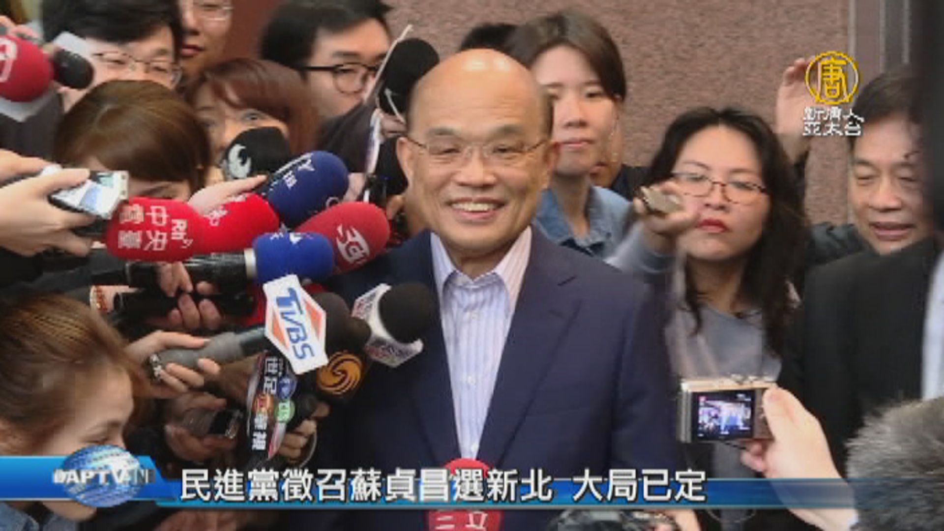【新唐人亞太台 2018 年 04 月 12 日訊】政治話題來看到,民進黨徵召老將蘇貞昌參選新北市長,大局已定。黨主席蔡英文今天上午在黨中央約見蘇貞昌,與會者 包括高雄市長陳菊等人。面對黨主席蔡英文親自勸進,蘇貞昌也同意代表民進黨出戰新北市。