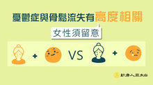 2018-04-02 10:13:34根據美國進行的一項研究發現,憂鬱症與骨流失有高度相關,罹患憂鬱症狀的女性骨鬆機率較一般女性高出1.42倍;針對亞洲老人進行的研究結果也顯示,有憂鬱症狀的長輩,更有高2.32倍的骨鬆風險。醫師表示,這是由於內分泌的相互影響,當體內缺乏維生素D3時,不僅會增加憂鬱情緒,還會減緩骨質的吸收。