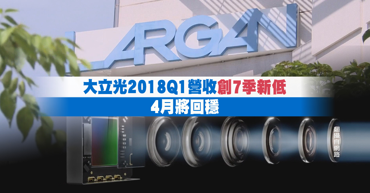 2018-04-14 12:18:51再來看到,股王大立光,本週舉行法說會,並公布第1季財報,營收88.77 億元,為7季以來新低,主因是營收規模縮小,以及新機種導入造成良率降低,執行長林恩平表示,如果市場交貨順利,預計4到5月表現,將會比3月,還要好。