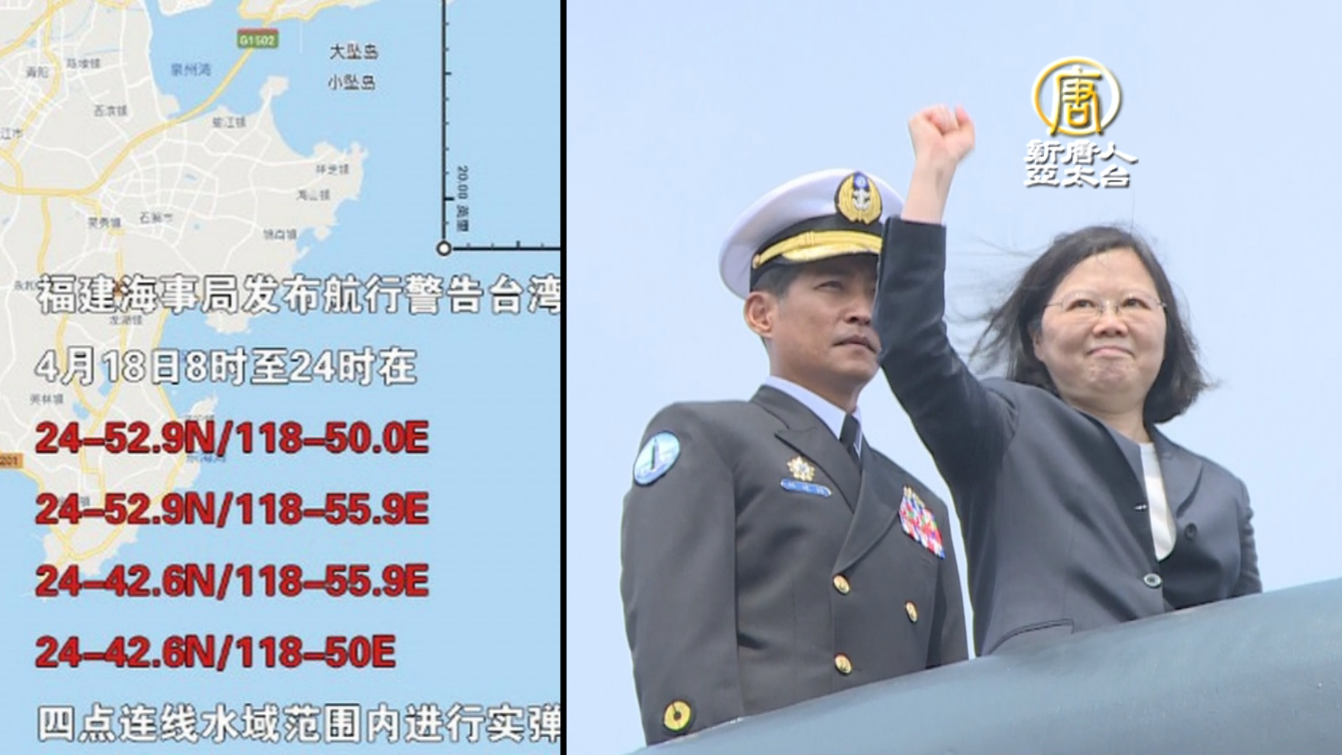 【新唐人亞太台 2018 年 04 月 13 日訊】歡迎回來。中共軍隊在南海的演習,昨天已經結束,但中共官媒環球時報,隨後卻發佈消息稱,福建海事局發佈警告,下周三,18日早上8點到至晚間12點,將在台灣海峽進行實彈射擊軍事演習,時間落在總統蔡英文出訪期間,引發外界關注。台灣國防部表示,這個公告的禁航區位於福建石獅靶場沿海,研判為共軍部隊年度例行性火砲射擊訓練。國軍對周邊區域情勢都能嚴密掌握與應處,確保國家安全。總統蔡英文,也將在今天,首度登艦出海視導海軍操演。另外,有平面媒體引述,知情人士說法,表示這是例行並且規模不大的火砲操演,但中共官媒刻意炒作,其實就是最近歐美各國高度重視的「假訊息作戰」的樣態之一。