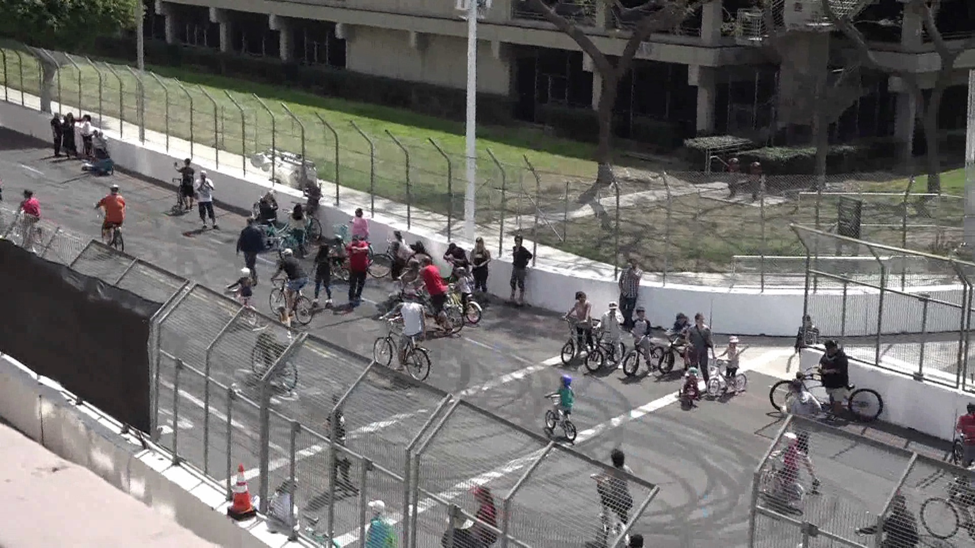 加州長灘賽車先熱場 開放騎自行車馳騁賽車道