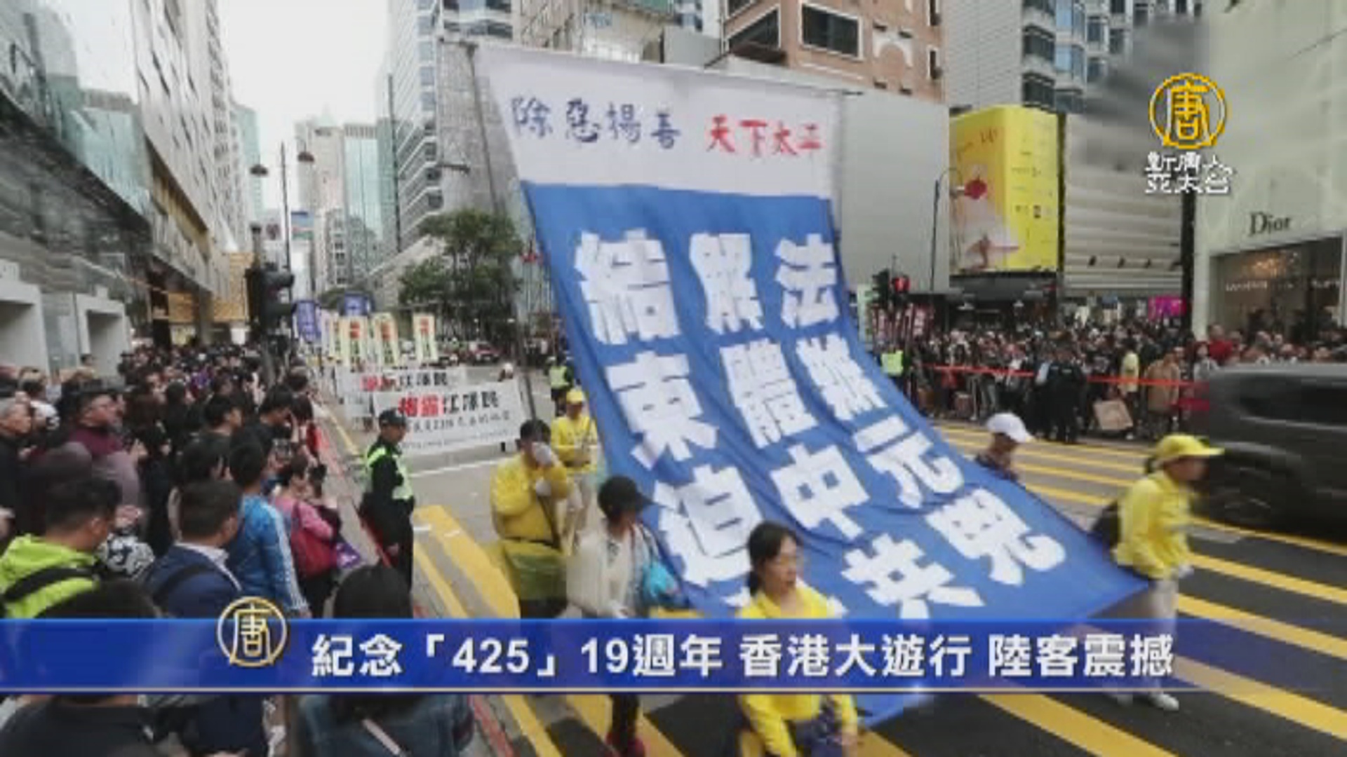 【新唐人亞太台 2018 年 04 月 16 日訊】今年4月25日是法輪功萬人和平大上訪19週年。香港法輪功團體週日舉行集會遊行,呼籲各國一起制止中共迫害,法辦元兇。許多大陸遊客第一次看到遊行,感到很震撼。