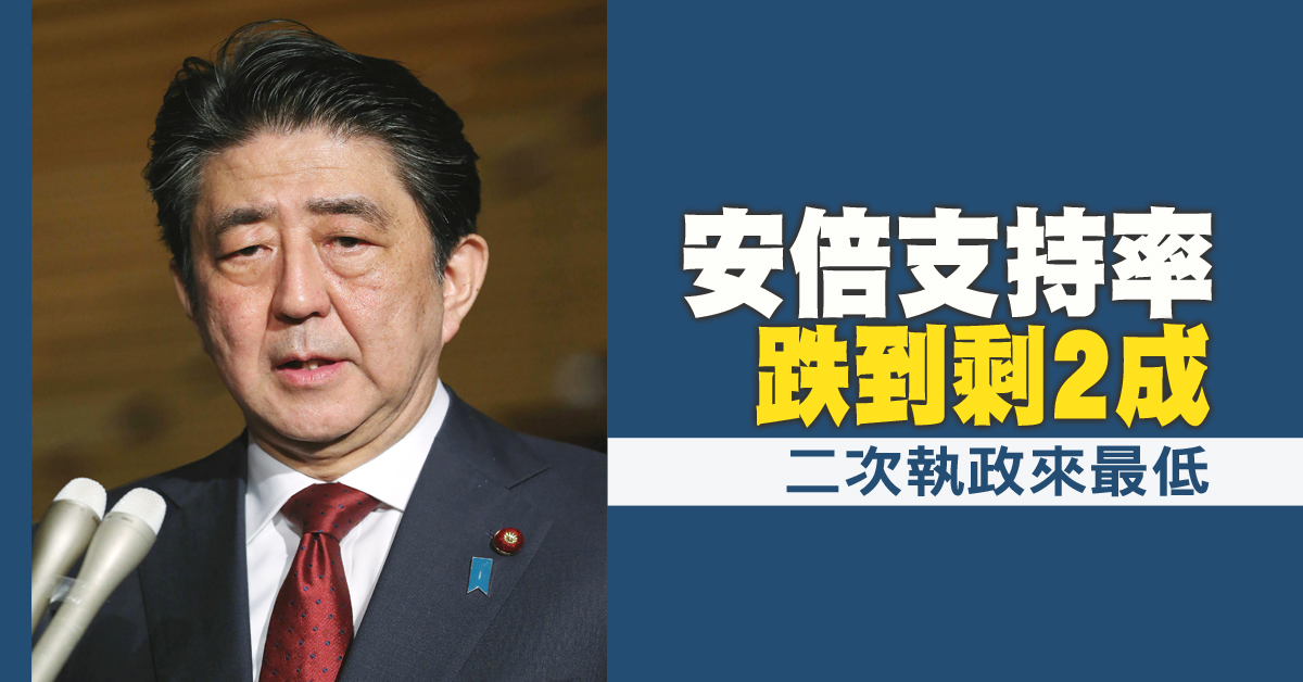 日本電視台:「根據日本電視台這週末的民調,安倍內閣的支持率,第二次執政以來,首次降到二成多。讓政府和執政黨充滿危機感。」