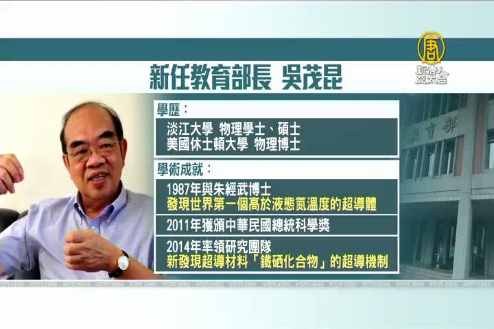 【新唐人亞太台 2018 年 04 月 17 日訊】歡迎回來,新的教育部長人選出爐了!教育部長潘文中上周請辭獲准後,行政院發言人徐國勇,宣布新的教育部長由中研院院士、東華大學前校長吳茂昆出任,預計19日交接上任。